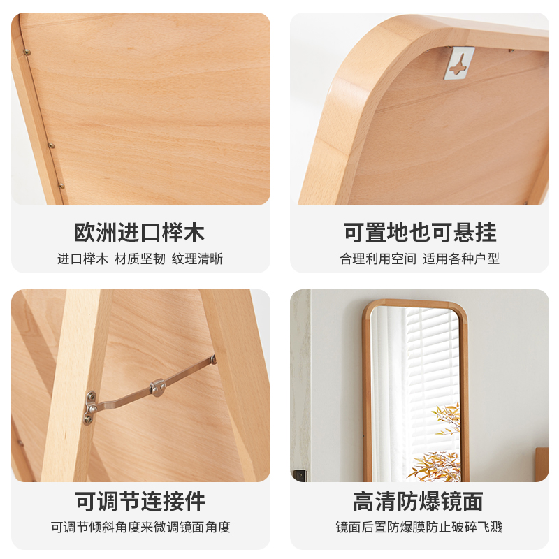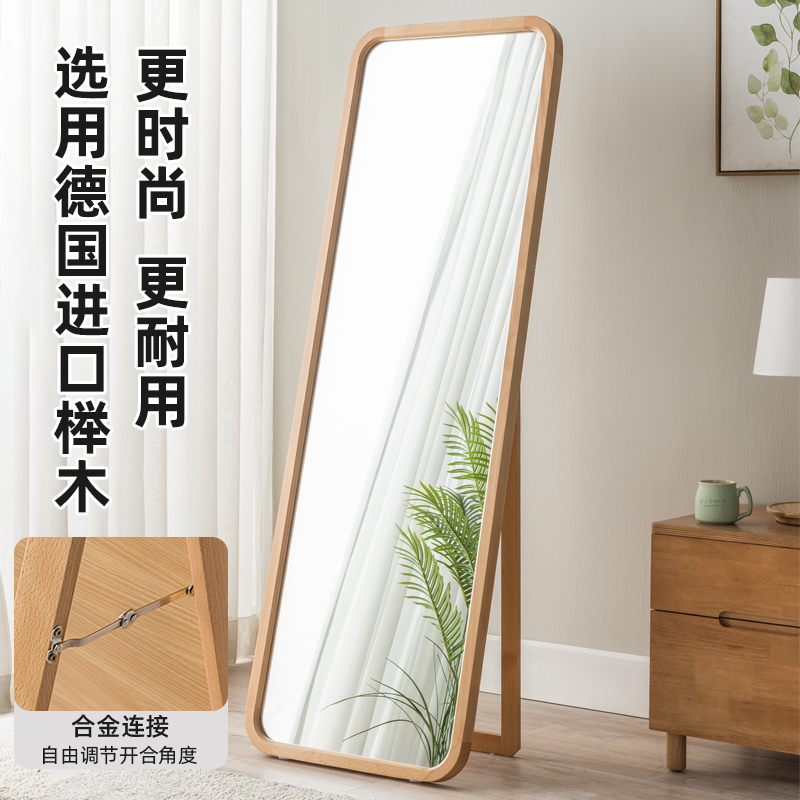 Nordic solid wood mirror full body wall hanging mirror simple home audiobook bedroom stereoscope length mirror