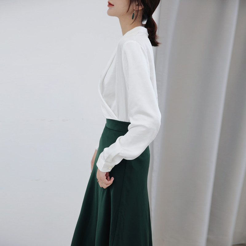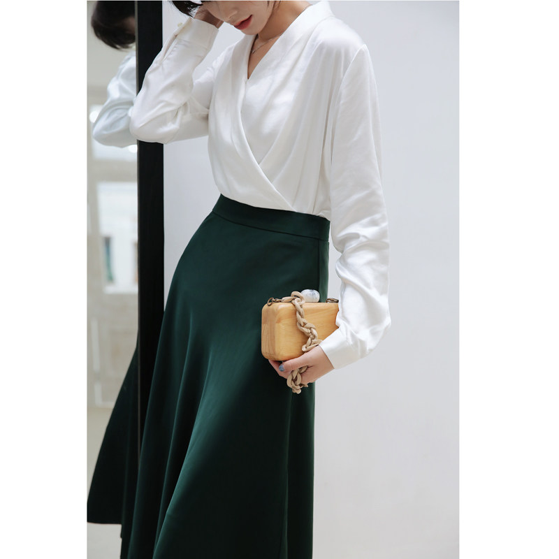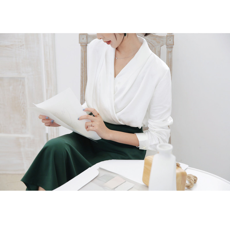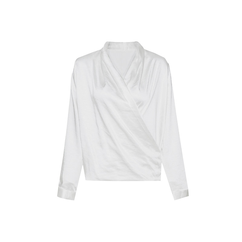 Spinning acetic satin matte cross-collar pearl white shirt temperament fashionable silky spring and autumn lazy coat