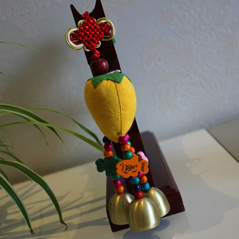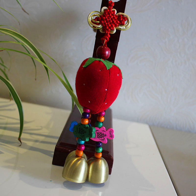 Ethnic style fabric strawberry pendant handmade wind chime anti-theft bell creative car bag hanging children's bedroom decorations