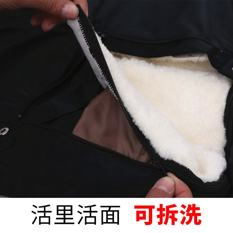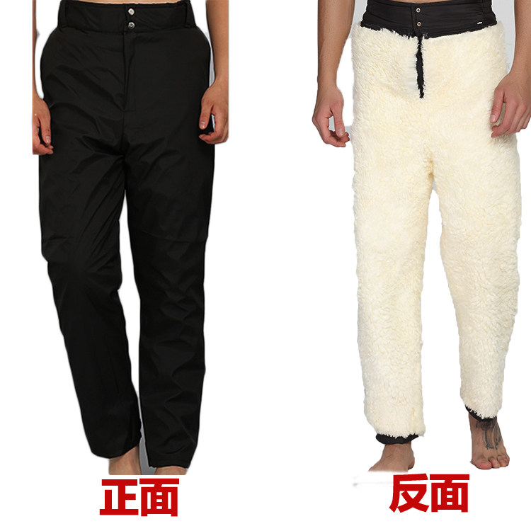 Leather hair integrated trousers Men's middle aged wool cotton pants with velvet thickened genuine leather warm anti-chill pants Sheep leather pants
