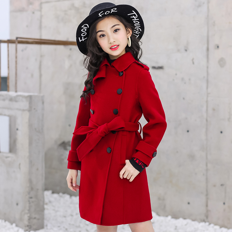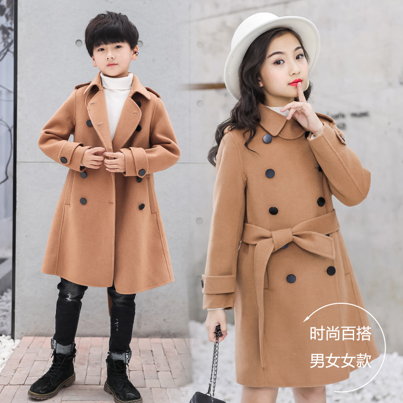 Wool coat Girls winter new children's double-sided wool slim Korean version of the long version of the boy coat big boy