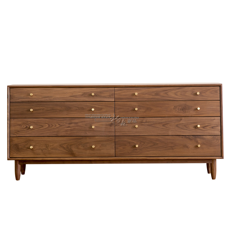 Nordic Japanese black walnut wood eight-bucket cabinet drawer storage cabinet storage cabinet bedroom furniture