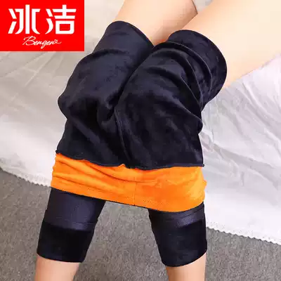 Ice clean glossy pants plus velvet winter New thickened nine-point pants outside wearing foot-legged light leg warm artifact female