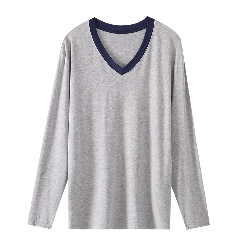 Autumn and winter men's modal long-sleeved T-shirt thin V-neck round neck pajamas loose plus size casual home wear top