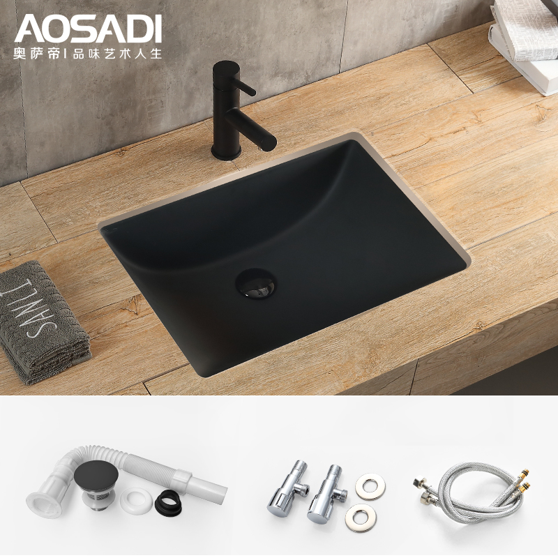 Osati Black under-table basin Square ceramic wash basin Embedded Nordic household Marble powder Room basin