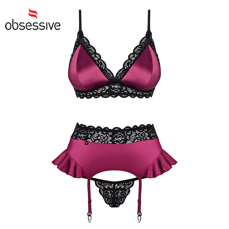 Obsessive Sexy satin bra Waist seal Garter suit Sex underwear Passion supplies Adult temptation