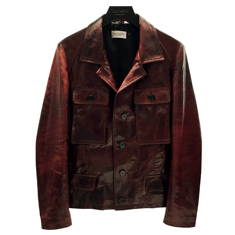 La Califfa Italian Sicilian Style Oil Wax Leather Sheepskin Lapel Men's Leather Fashion Jacket