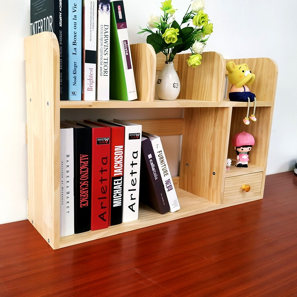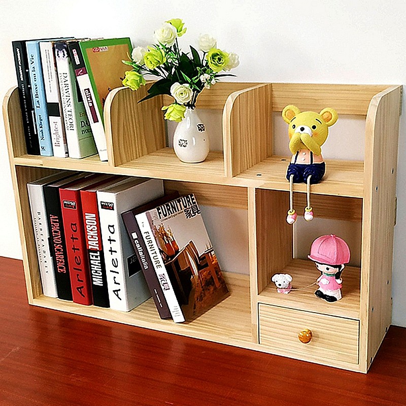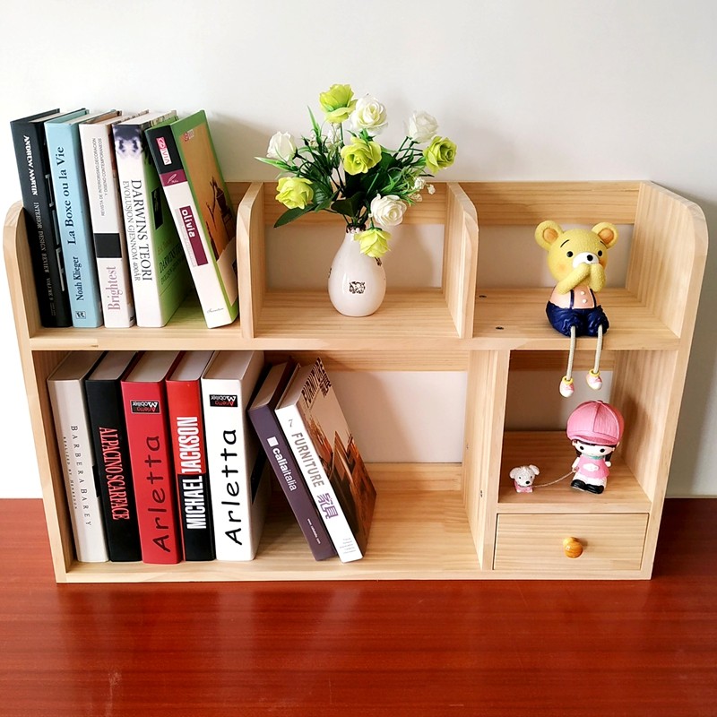Solid wood desktop bookshelf student storage creative storage bookcase with drawers simple children's locker log floor