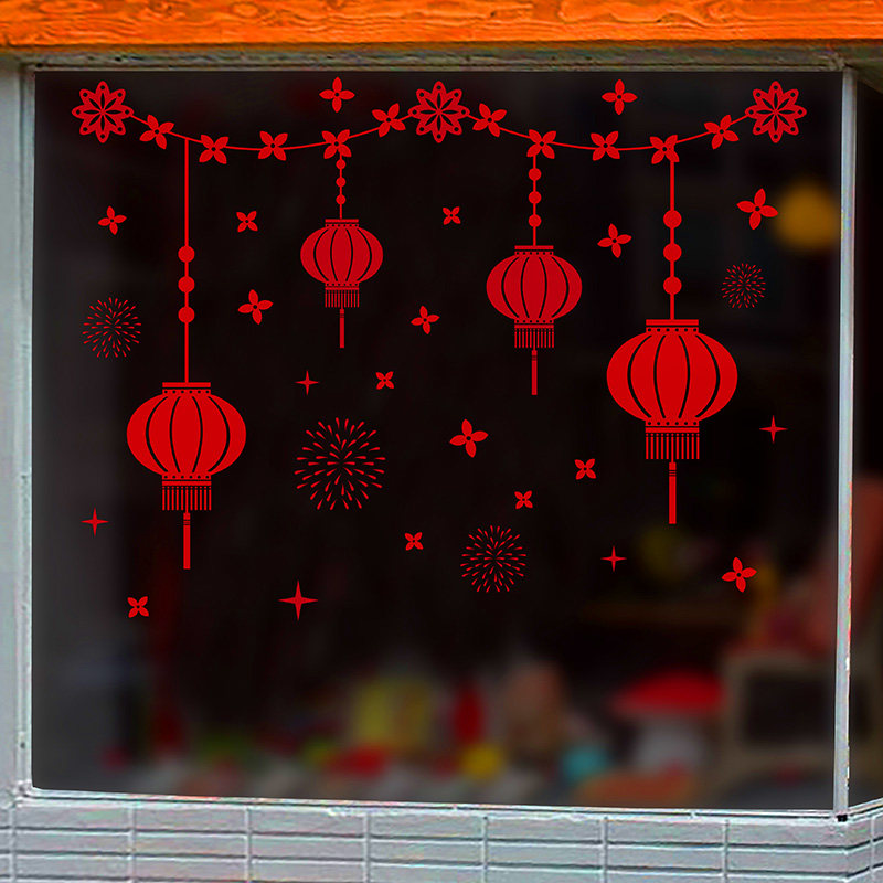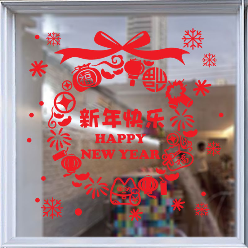 New Year's New Year decorations Indoor living room Windows Glass Stickers Door Post Spring Festival Arranged Year Painting Wall Sticker Home Window Flowers