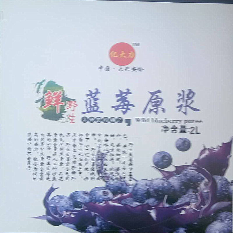 Daxinganling wild blueberry puree Yidali Blueberry juice concentrate Fresh fruit Blueberry juice juice drink Brewing drink 2L