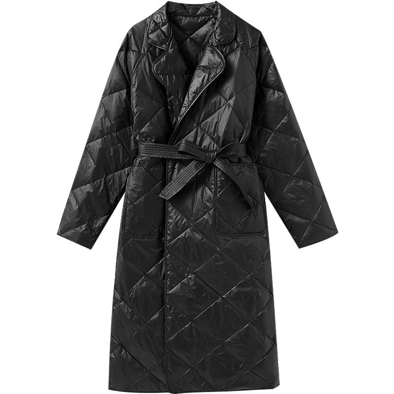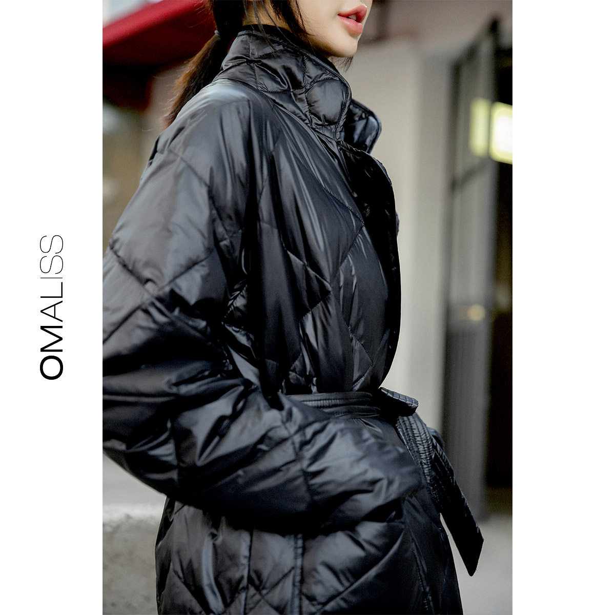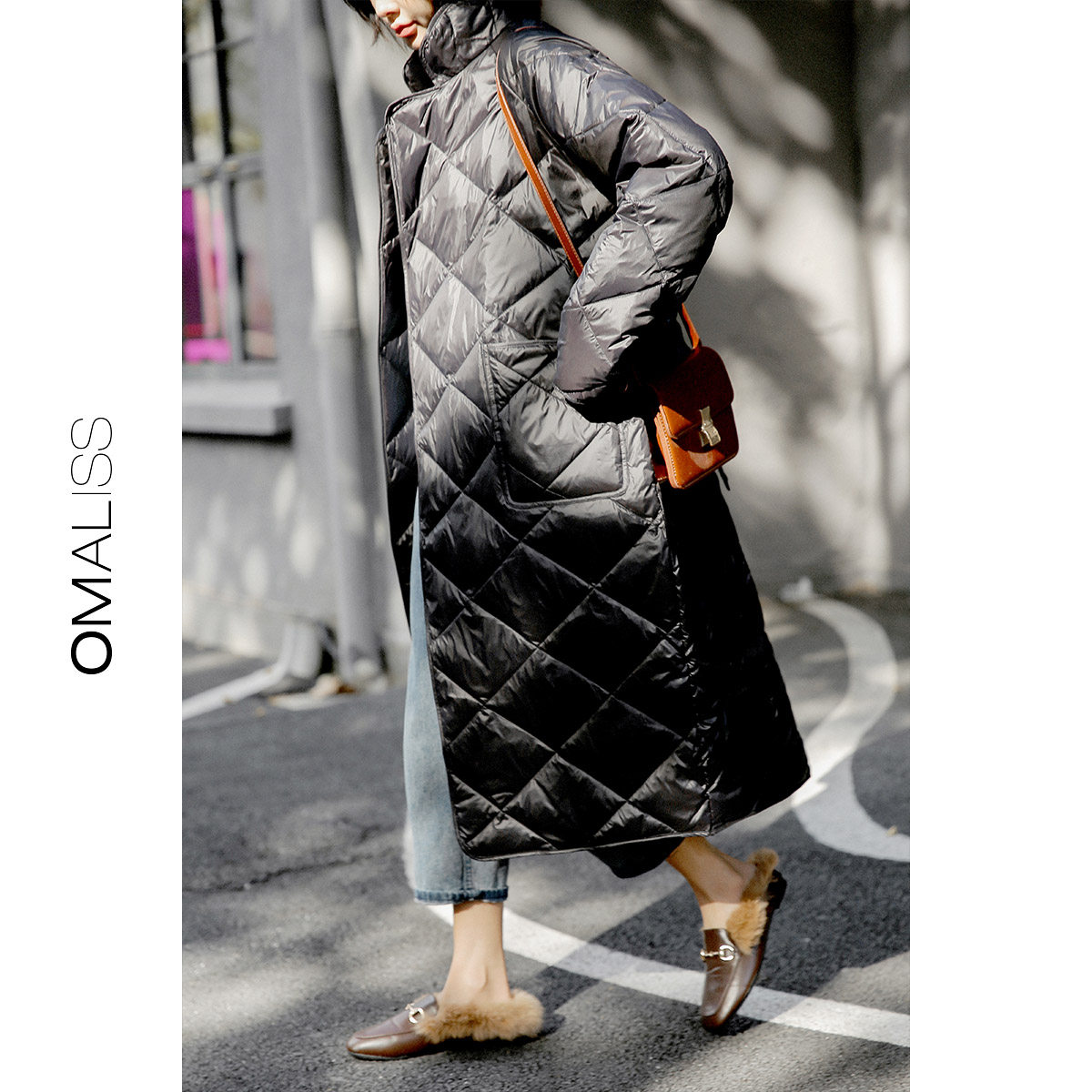 Winter thin 2021 new black down jacket women long tide ins explosive white duck down knee loose jacket
