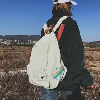 Ancient schoolbag Korean version of Harajuku ulzzang simple College students canvas backpack Sen series large capacity backpack tide