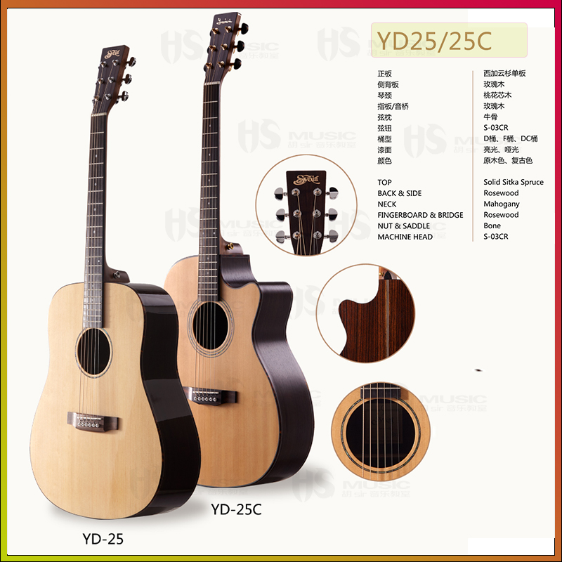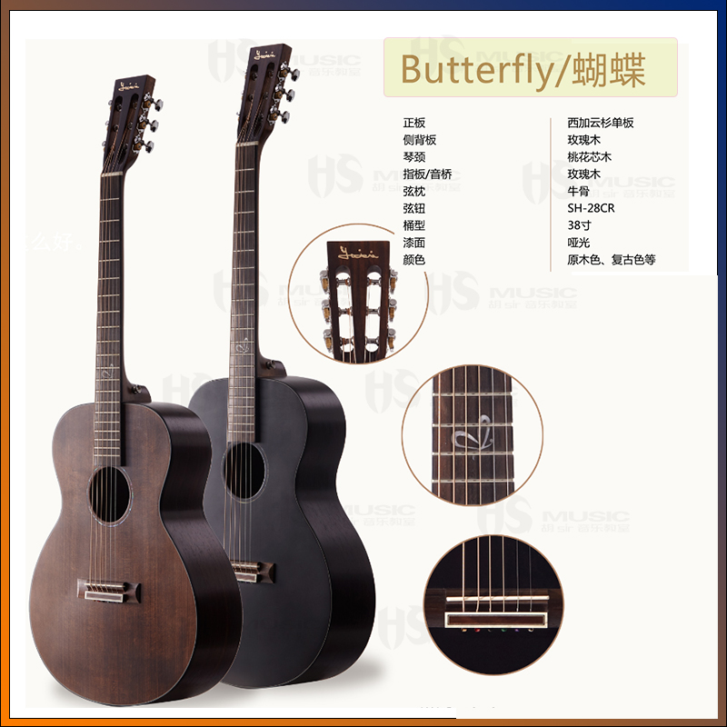 Jayli guitar D950D2400 Yayli YD25 butterfly with a face single folk guitar by husir music