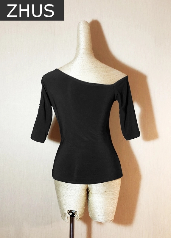 Latin dance suit female adult simple blouse adult female dew shoulder sexy middle sleeve body Moden dance blouse Y61