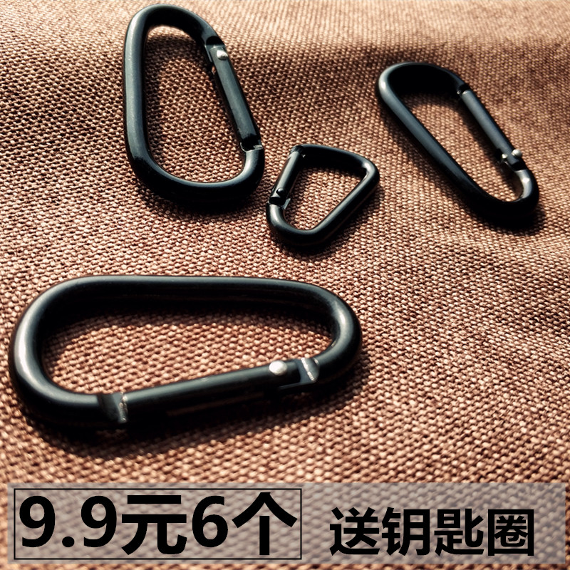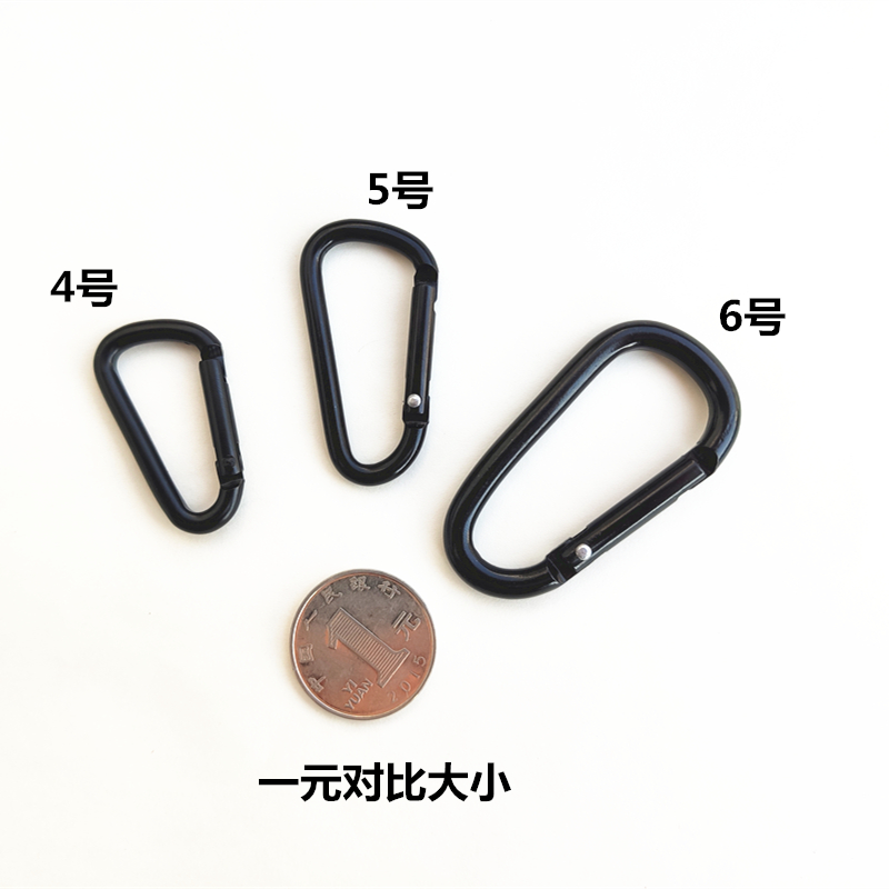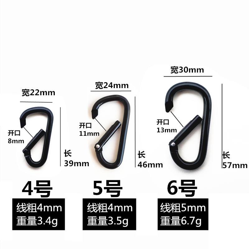 Pure black D-shaped buckle No 4 No 5 No 6 Aluminum alloy carabiner Mini portable keychain bag hanging buckle Quick hanging