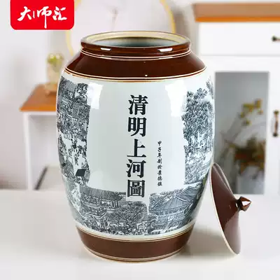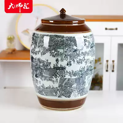 Jingdezhen ceramic antique rice tank rice barrel household storage tank water tank wine tank 50kg rice box moisture-proof storage