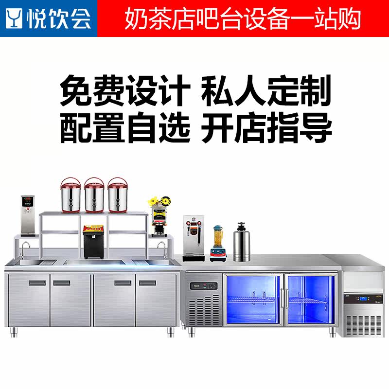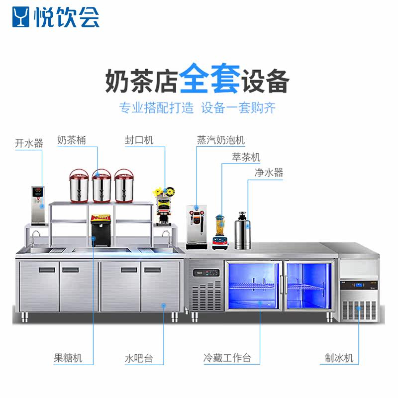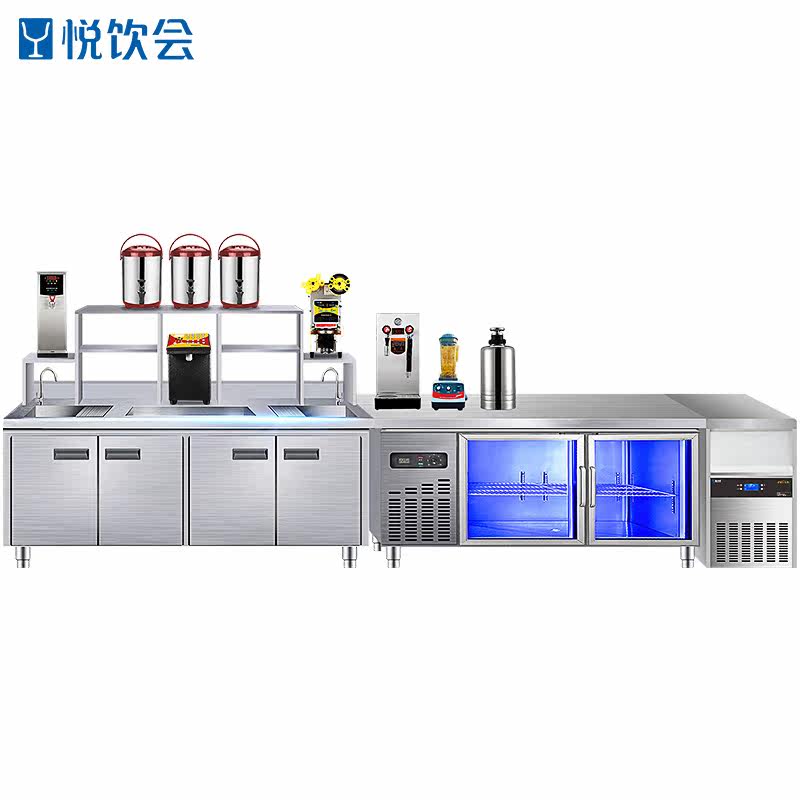 Yue Water Bar Commercial Milk Tea Shop Full Equipment Frozen Cabinet Refrigeration All Stainless Steel Operating Table Worktable