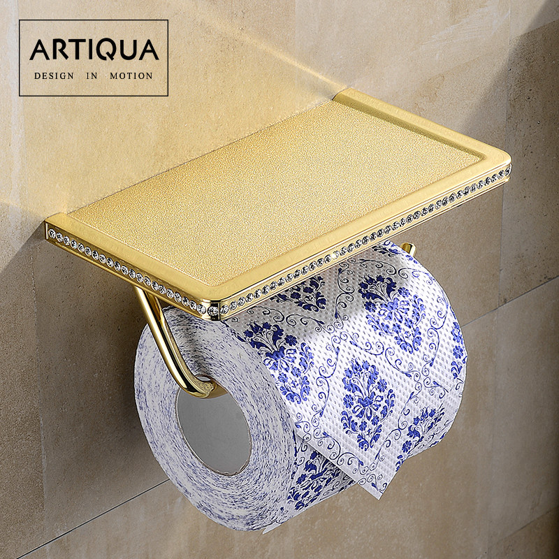 German ARTIQUA free of punching full copper gold drum toilet paper toilet paper towels Shelf Bathroom Pendant Inlaid Crystal