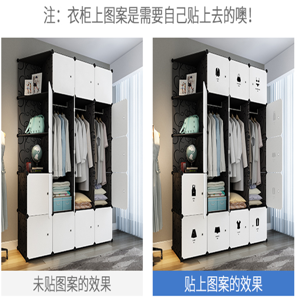 Simple Wardrobe Bedroom Furniture plastic cloth containing layer frame Ramen steel tube plus coarse reinforcement new assembled double cabinet