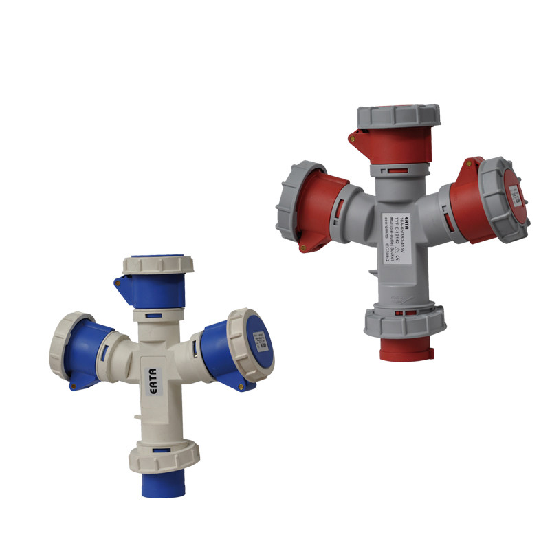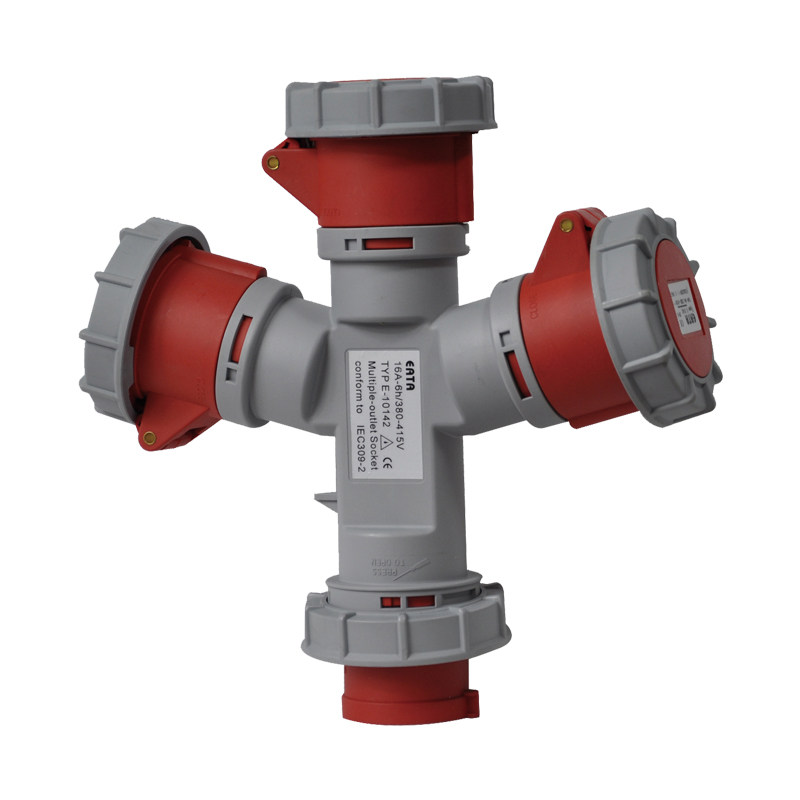 Multifunctional industrial socket three-way one-point three 16A32A 3-core 4-core Y-type IP67 waterproof 380V three-phase four-wire