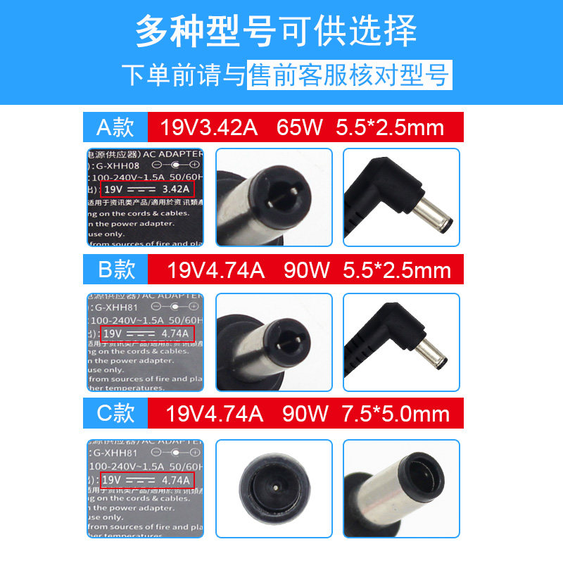 Paragraph A 19V3 42A 65W Standard round mouth B paragraph 19V4 74A 90W Standard round mouth C subsection 19V4 74A 90W round mouth