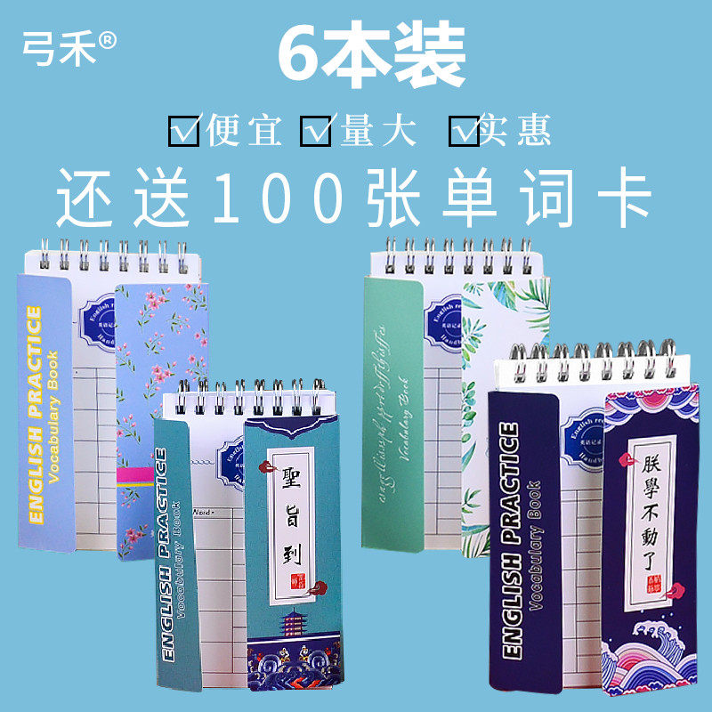 Bow Wo (6 packs)Small fresh creative English word book can block cute writing students carry pocket book post-it note book Mini small book Chinese style ancient style retro coil book