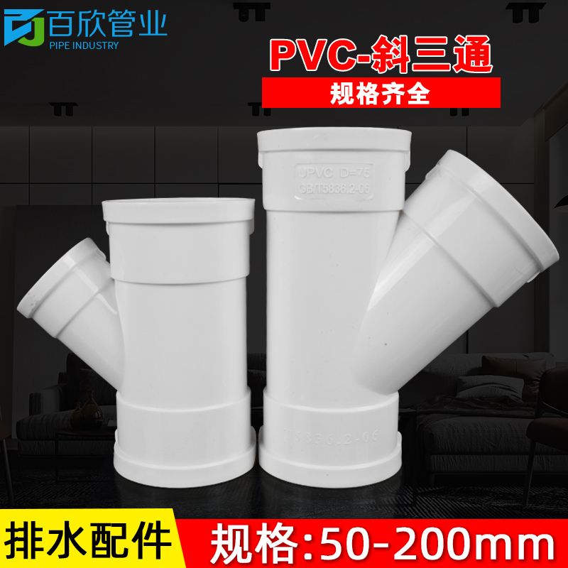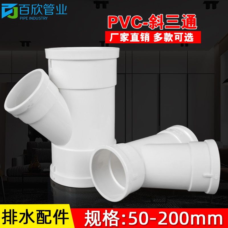 PVC oblique three-way drain pipe 45 degree equal diameter reduction exhaust pipe fittings 50 75 110 160 200 250