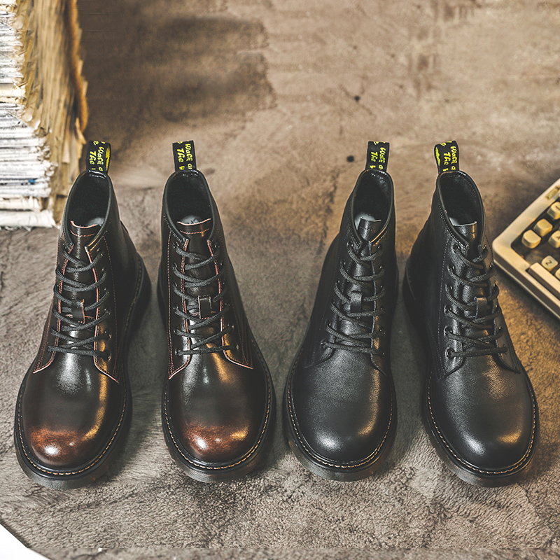 2022 new middle cylinder Martin boot male wave Inlenty wind high cylinder shoes spring autumn genuine leather short boots Korean version 100 lap tooling