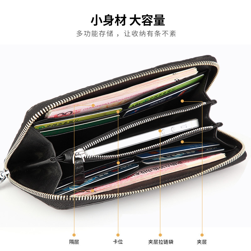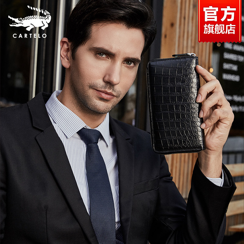 Caravan Crocodile Men's wallet genuine leather Long version Laced Hands Grab Bag Avocado Leather Hand Grab Bag Money Clips Youth Handbags