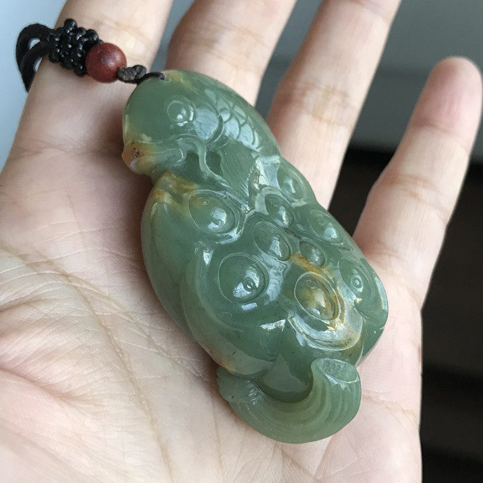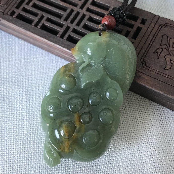 Analysis Wood Green River Grinding Jade Pendant Lotus Root Fish River Grinding Jade Fish Lotus Lotus Root Jade Pendant Old Jade Pendant Fish Handlebar Piece