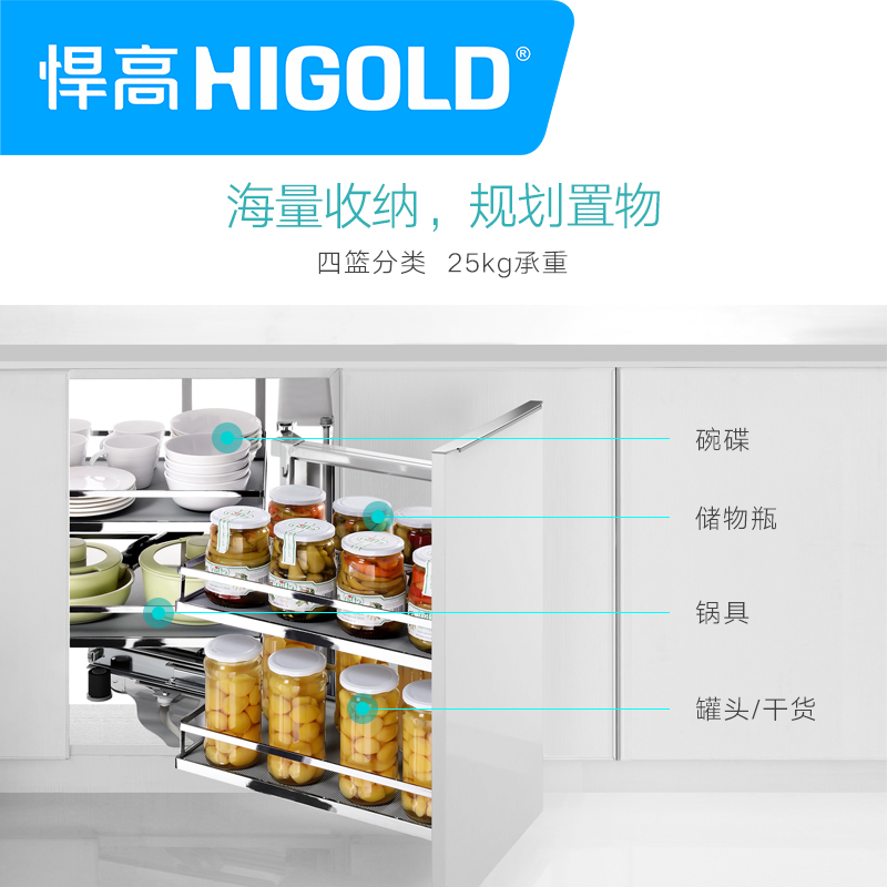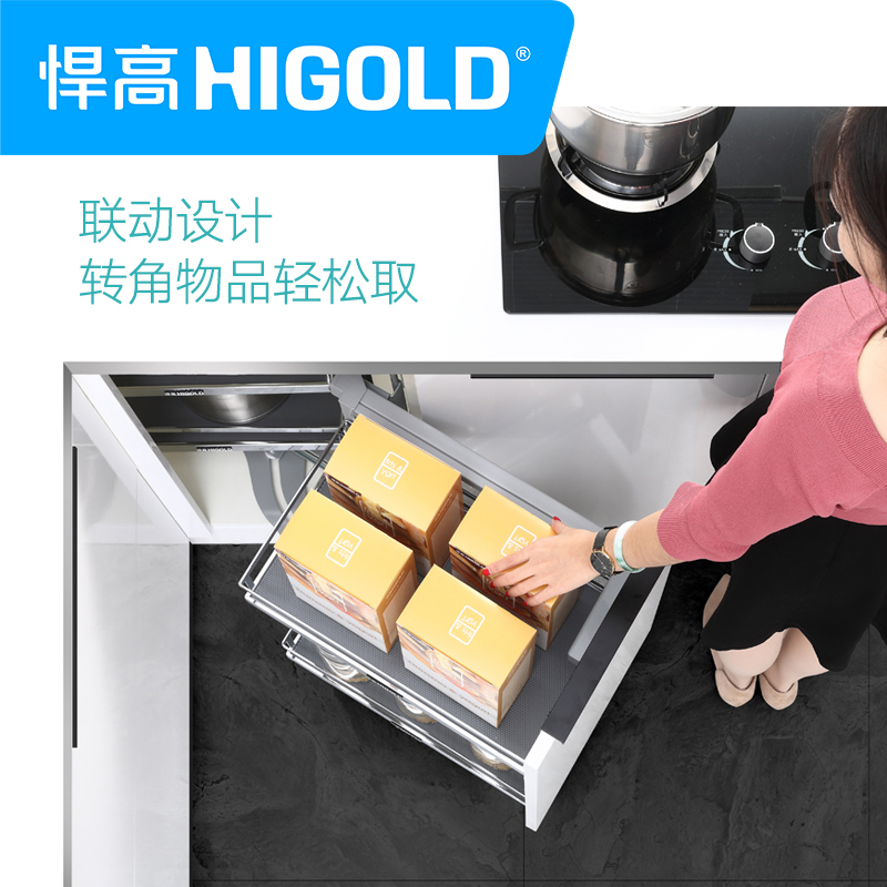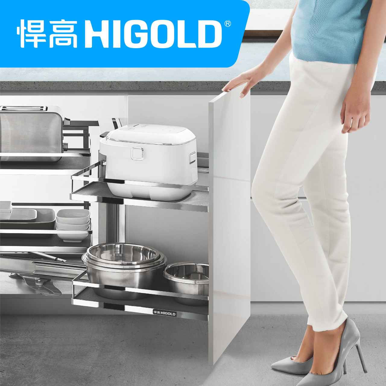 Highold high corner small monster multi-function stainless steel kitchen integral cabinet pull basket double-layer linkage floor cabinet basket