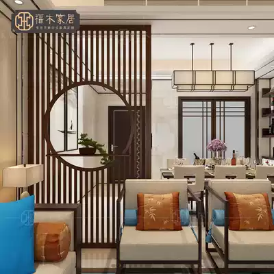 New Chinese style screen partition wall living room simple modern solid wood decoration entrance Hotel Feng Shui hollow carved seat screen