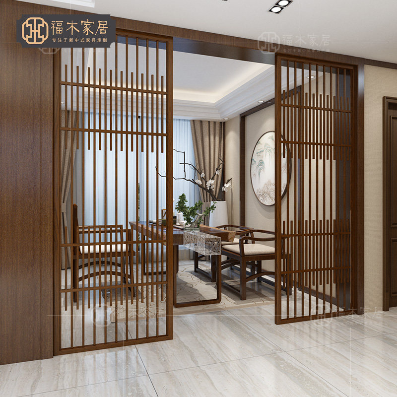 New Chinese-style screen partition solid wood ceiling living room entrance porch simple modern restaurant hotel seat screen small apartment