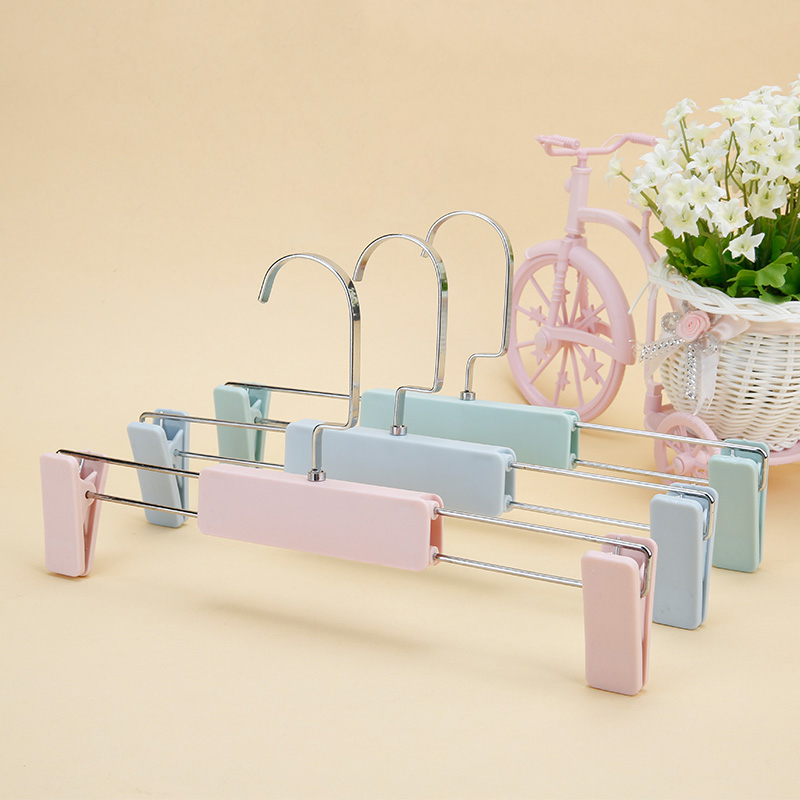 Solid color telescopic plastic trousers clip waist trousers trousers clip household non-marking hanger transparent gasket non-slip trousers hanging