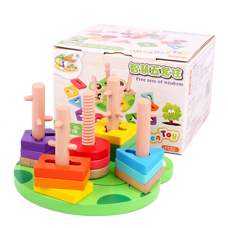 Children's thinking geometry matching wisdom five sets of column building blocks baby early education educational toys teaching aids