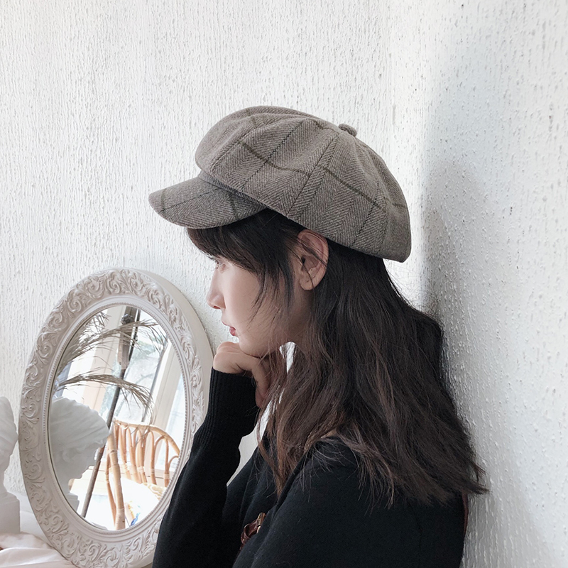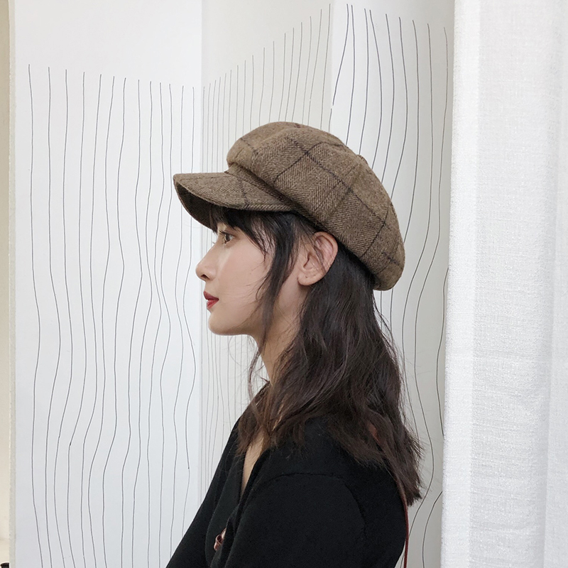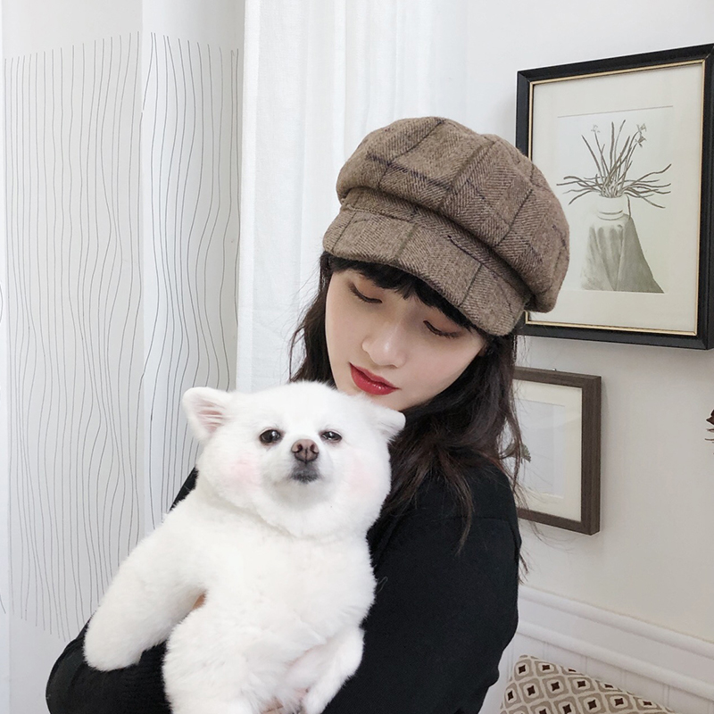 Western Moto Hat with Inglo-Octagonal Hat Woman Autumn Winter Korean Edition Retro Newspaper Boy Painter Hat 100 Lap Berets