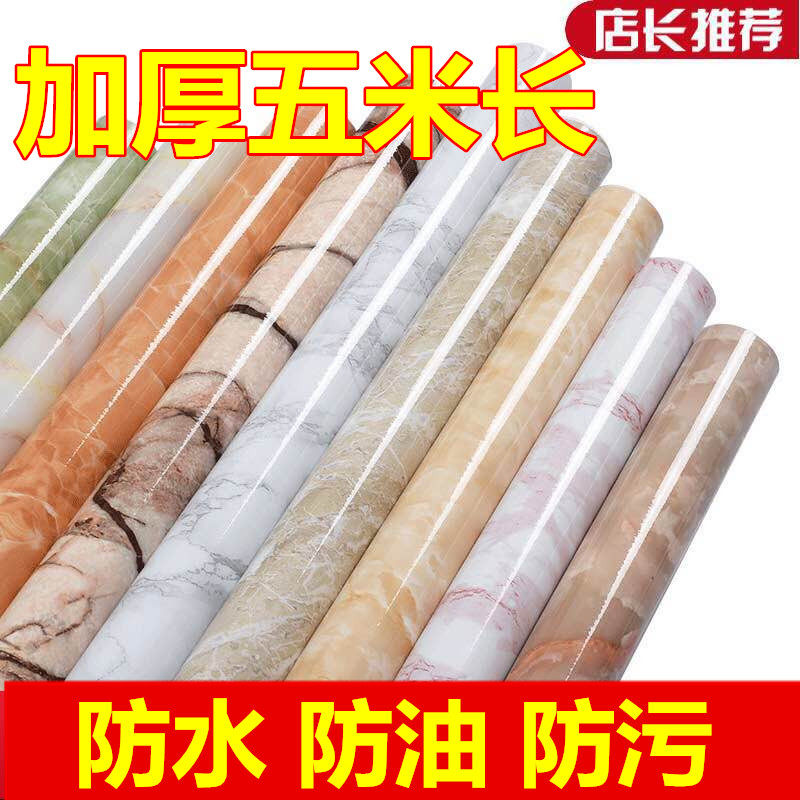 Kitchen self-adhesive wallpaper 1 2 meters wide 10 meters imitation marble pattern sticker 3d stereo countertop waterproof thickened s5o7