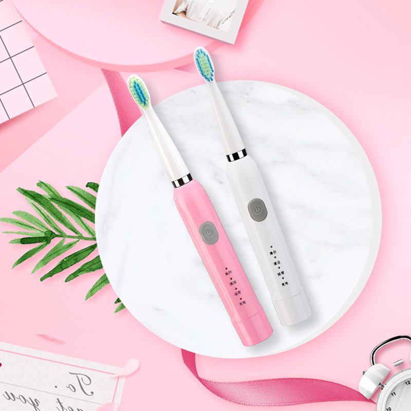 Pearl white small brother single USB rechargeable electric toothbrush four brushed heads pink white lovers suit two toothbrushes USB rechargeable with 8 replacement toothbrush head pink little sister