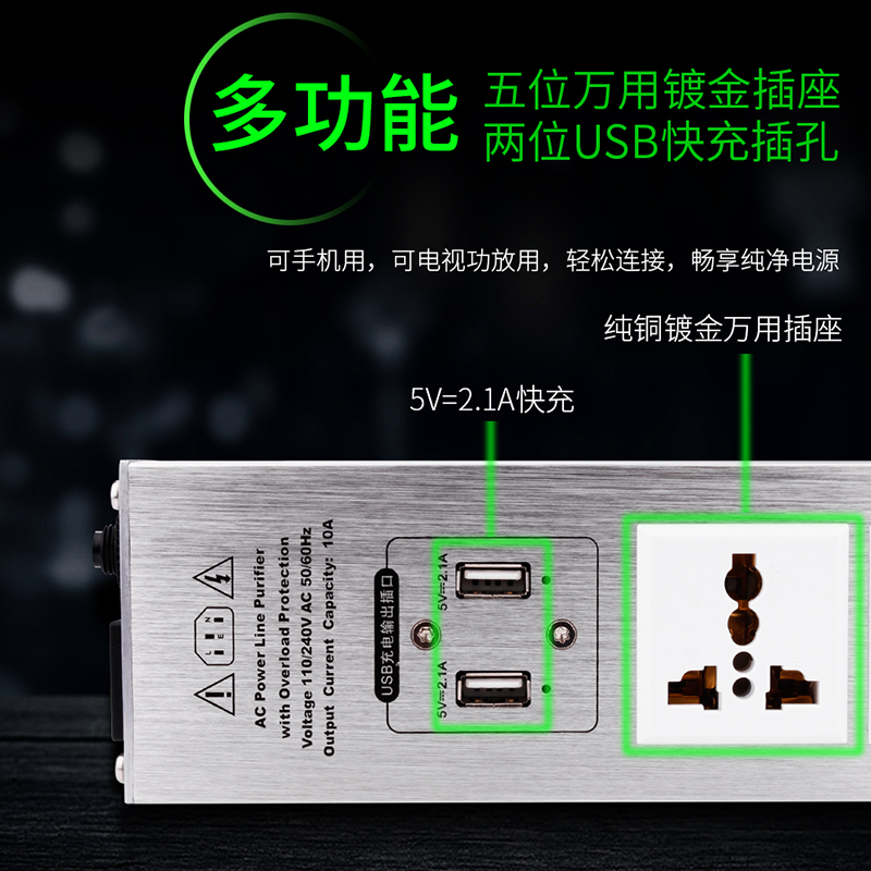 YYAUDIO power filter Fever HiFi sound power supply purifier lightning protection insert seat with USB charge