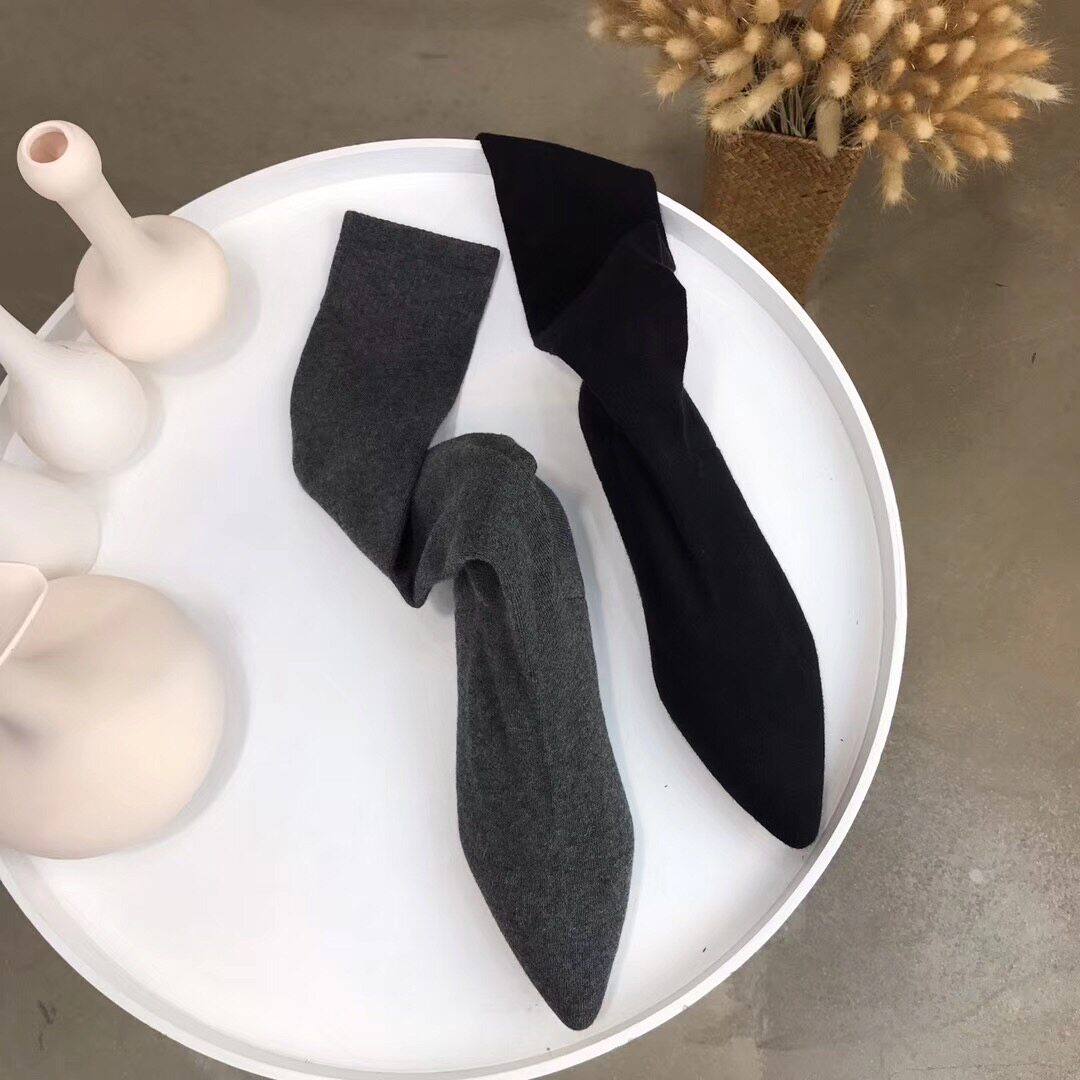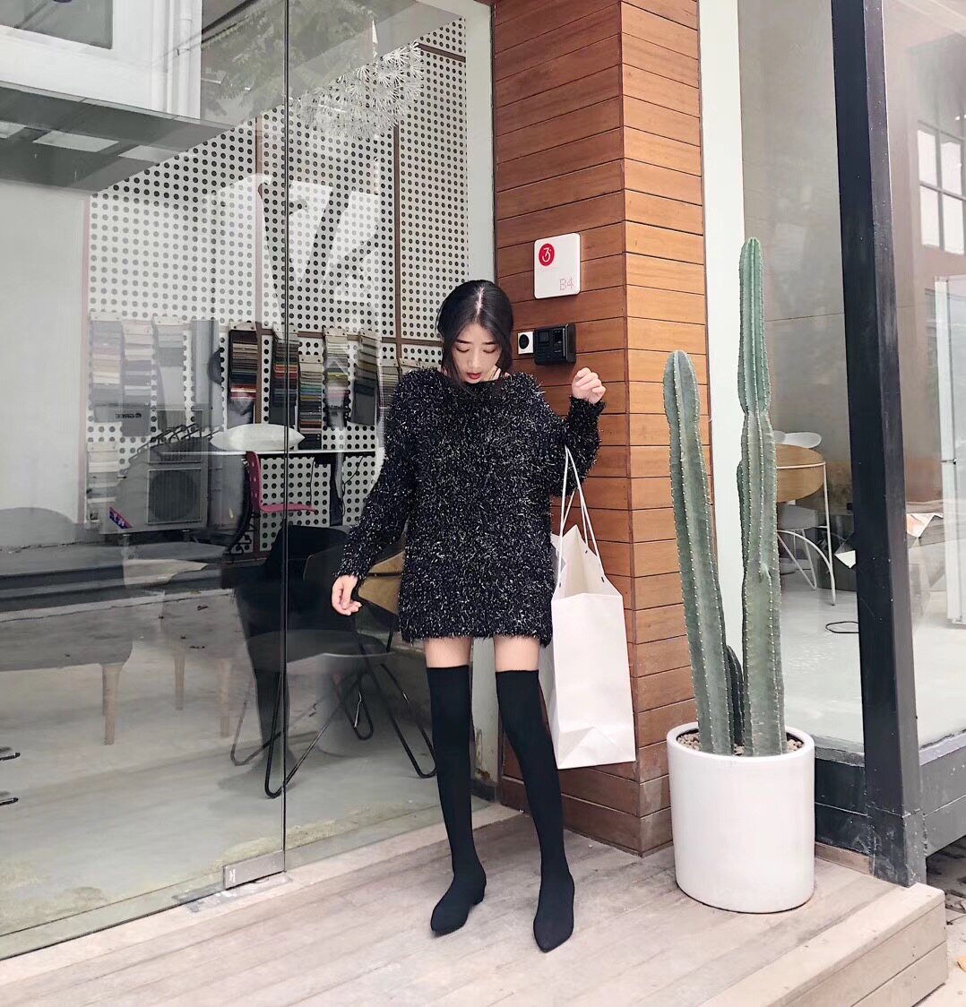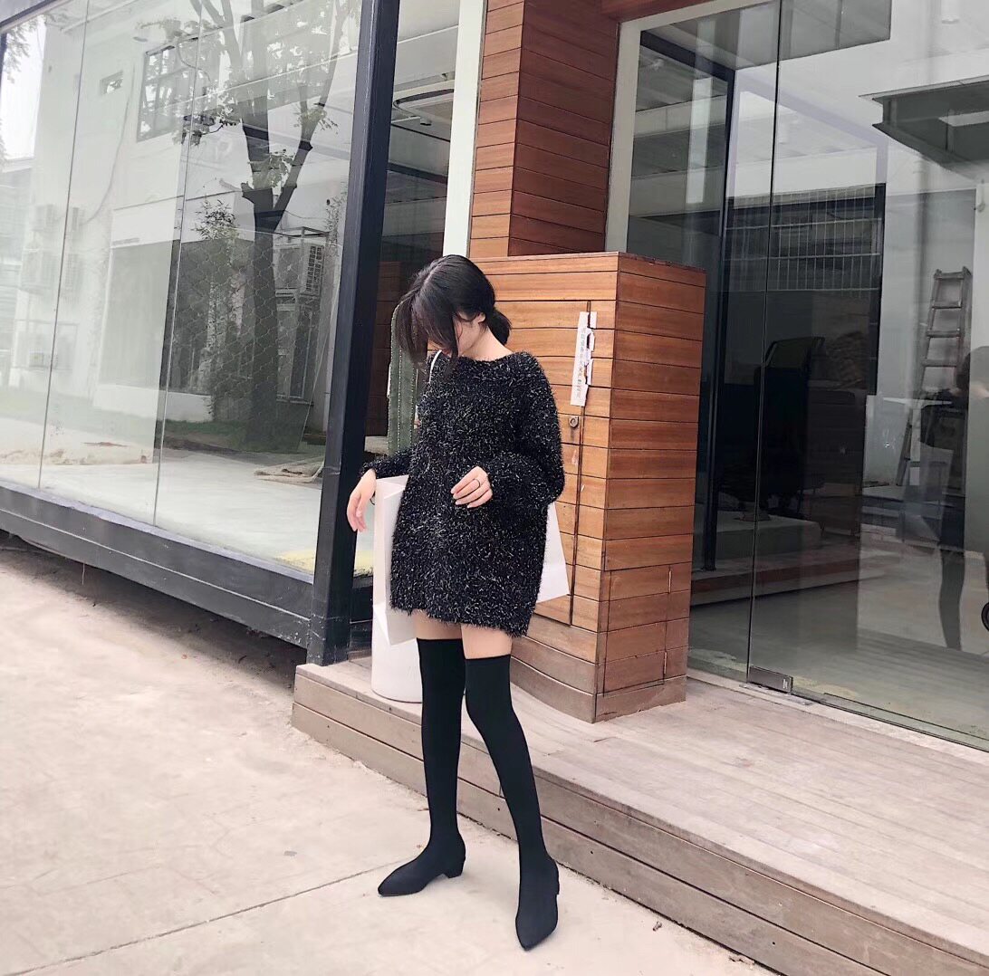 Net red the same thin stretch socks boots high tube knitted wool pointed thick heel flat knee boots women's autumn and winter