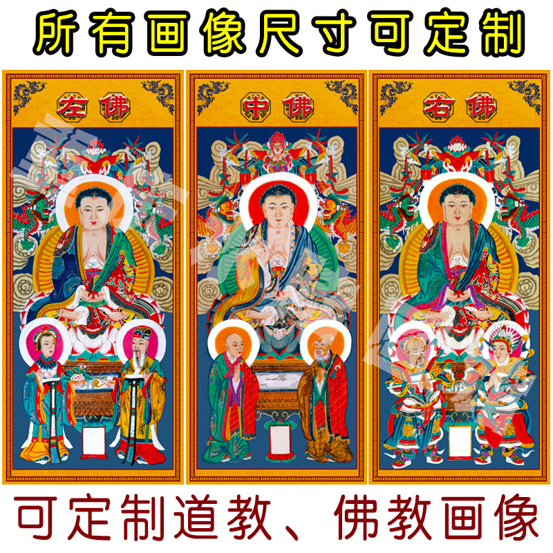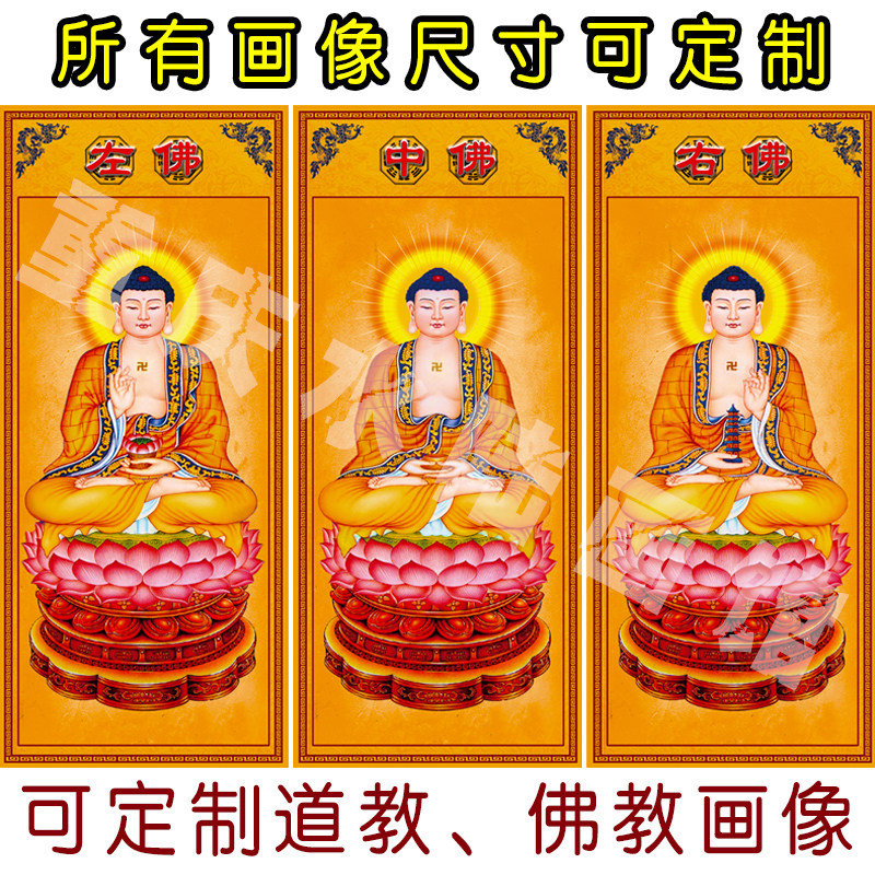 Three Treasure Buddha Hanging Painting Ten Halls Yan Jun Daochang Painting Five Buddhas Portrait Amitabha Buddha Shakyamuni Buddha Medicine Buddha Third Buddha