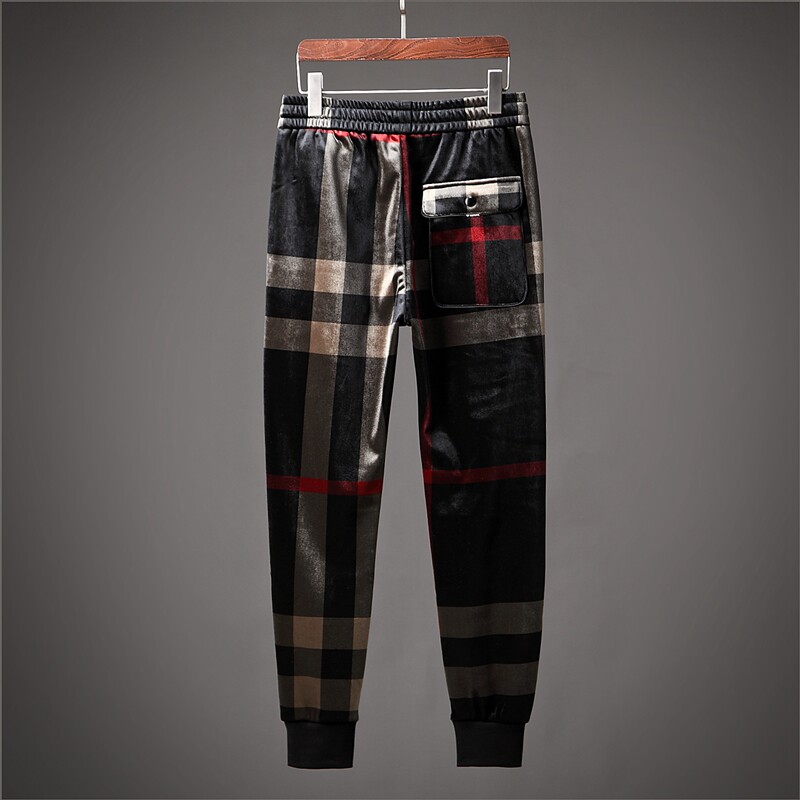 Deep octave autumn and winter flocking thickened Wei pants British plaid pants Warm cigarette tube pants Gold velvet casual pants men