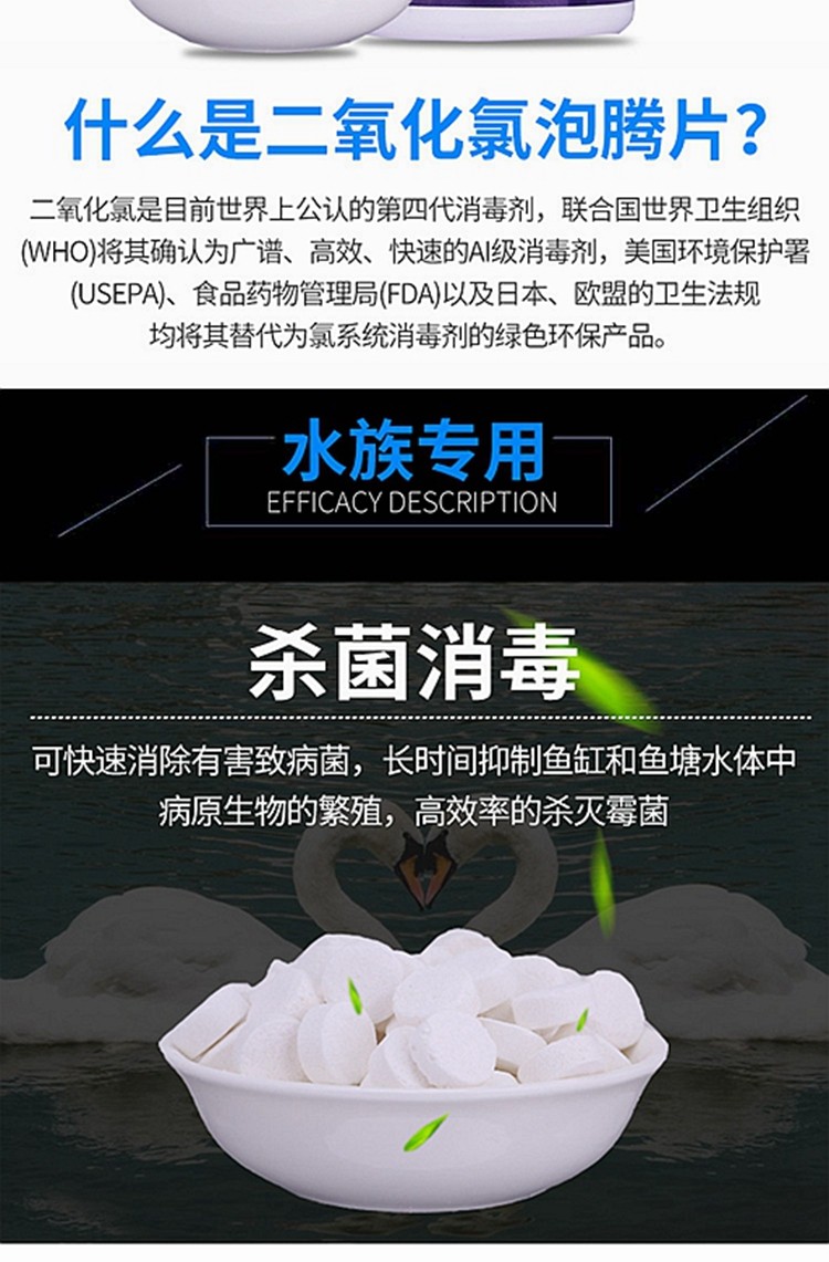 Aquarium fish pond fish with chlorine dioxide effervescent tablets white point breeding bactericidal disinfectant disinfection powder algae removal water purifier