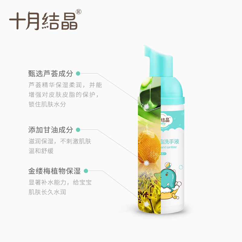 October crystal baby wash-free bubble hand sanitizer baby children portable 50ml * 2 bottles of hands and feet sterilization
