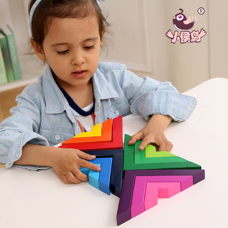 Children Early Education Cubic Space Thinking Perceptual Balance Sensation Training Rainbow Color Building Blocks Stacked of Puzzle Power Toys