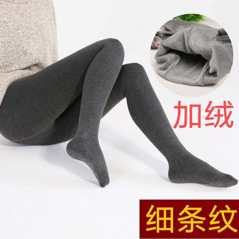 Pregnant women plus fat increase threaded foot bottoming socks plus velvet thickened stockings autumn and winter pantyhose stepping foot pants vertical strip