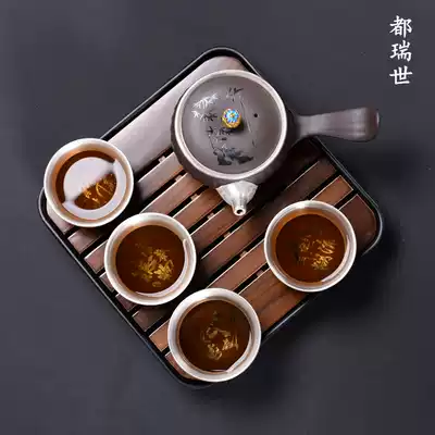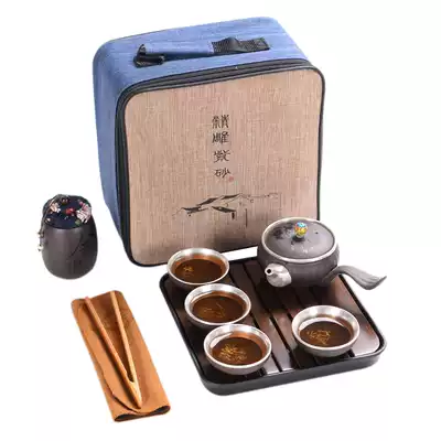 Sterling silver tea set set travel fast guest Cup gilt purple sand kung fu tea cup side pot dry bubble plate tea jar set