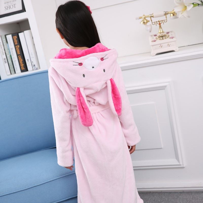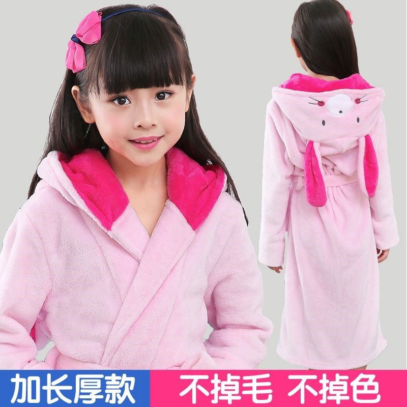Autumn and winter girls bathrobe flannel girl long baby pajamas coral fleece thickened children's hooded nightgown