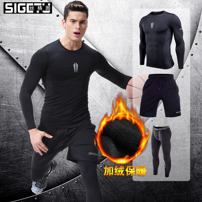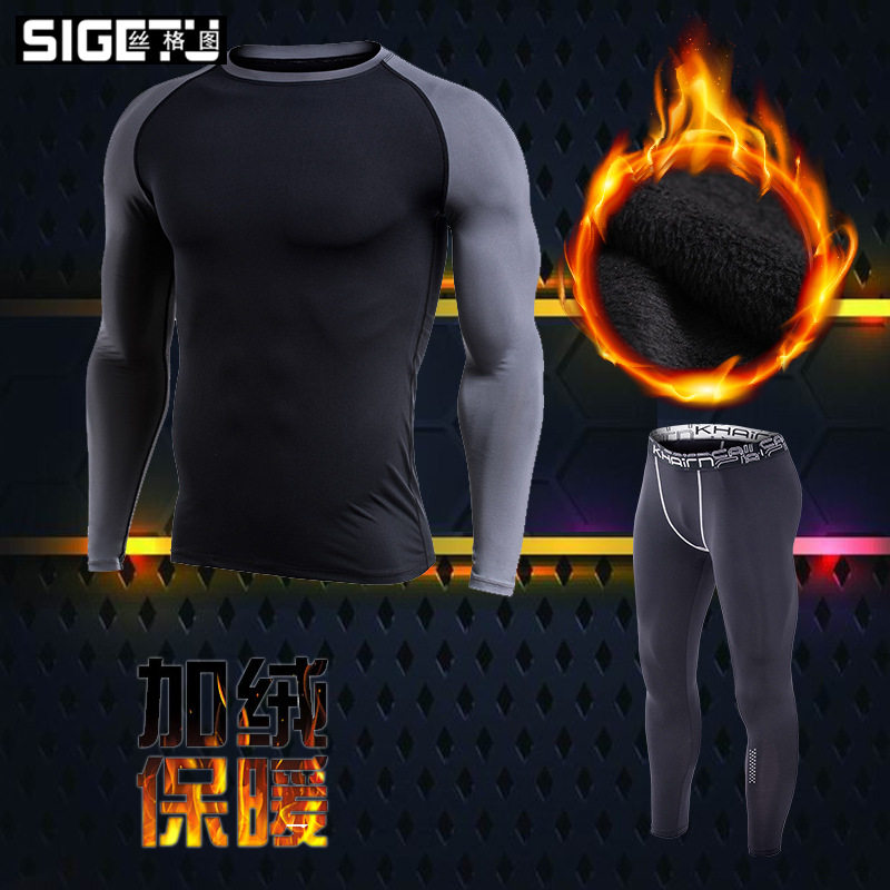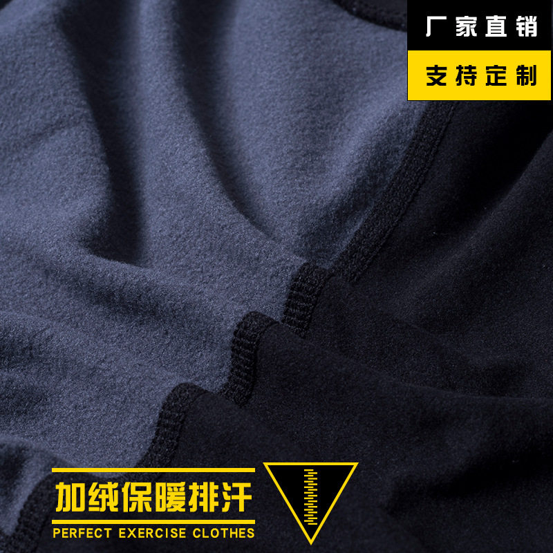 Plus fat plus large size sports suit plus cashmere men's elastic tight gym clothing Long sleeve autumn and winter warm training running clothing