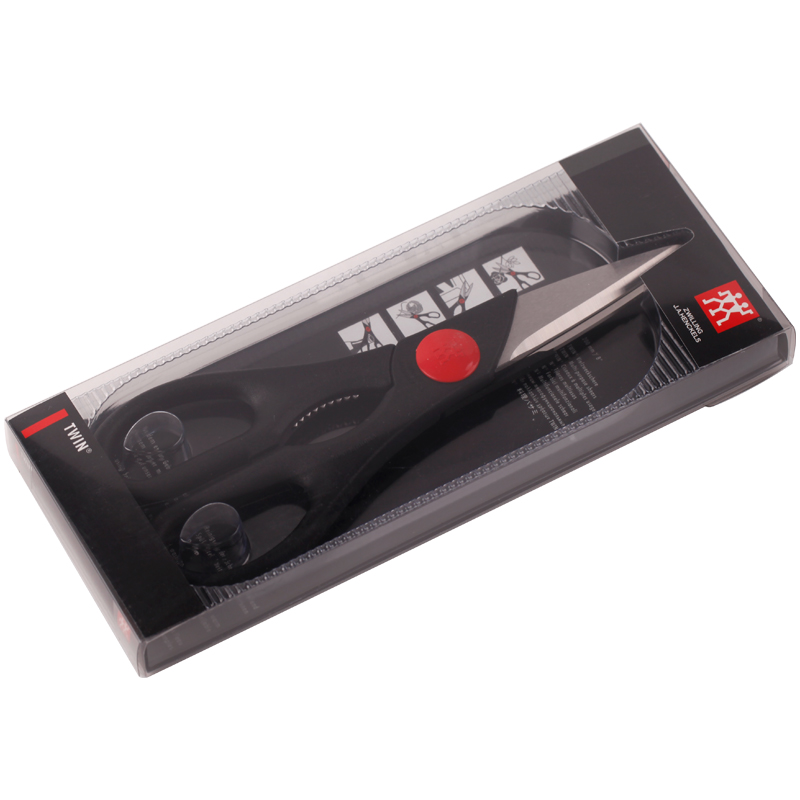 (Upgrade more durable) Black plastic handle scissors German manufacture kitchen scissors all stainless steel kitchen scissors double red classic grinder double granite without sticking pan double fruit knife 3 piece set